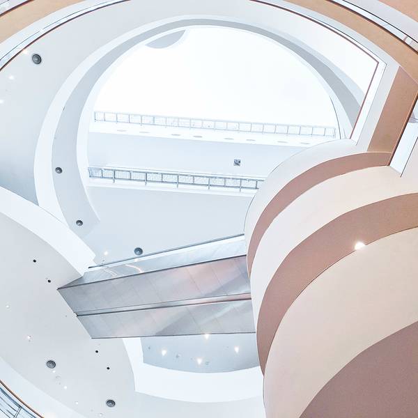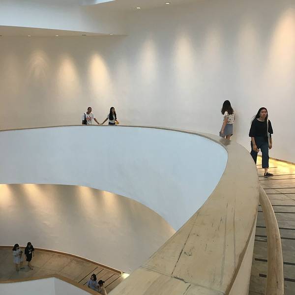 除此以外,这里的建筑也值得一看,最特别的就是楼梯,类似纽约的古根海姆美术馆,螺旋上升的步道一圈一圈将参观者引领至顶层。超现实主义的风格,像极了日剧《四重奏》里说的“人生有三条道,上坡道、下坡道和没想道”,要有享受上坡道的自信,也要有走完下坡道的勇气,还能Hold住人生旅程中的各种没想到。