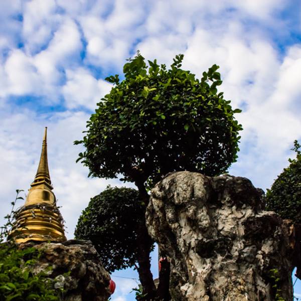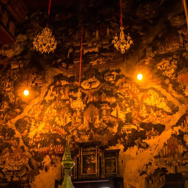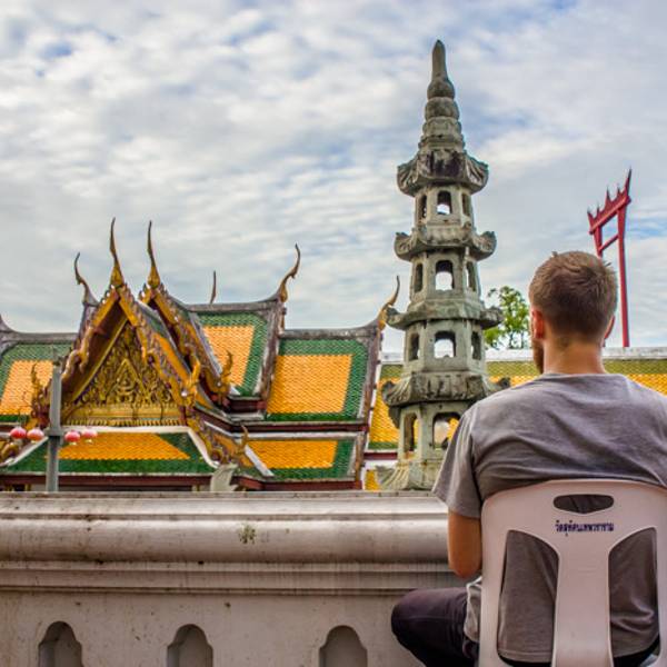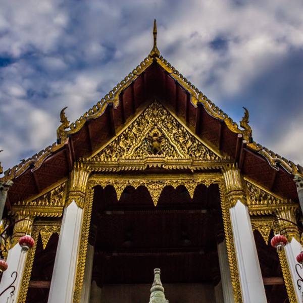 寺庙之中,还有几位外国游人,安静地坐在二层,照着寺庙画着画,显得格外幽寂。如果希望观赏一座在泰国享有盛誉的最高级别寺庙,又不希望像大皇宫,玉佛寺那般拥挤,美丽而清幽的苏泰寺,无疑是一处绝佳的寺庙选择。