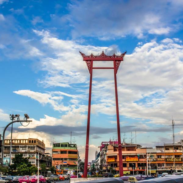 坐落在曼谷市中心的婆罗门教圣物圣清茶,如今已经没有了昔日的辉煌,人们很容易将它遗忘。 然而,它依然坚毅地树立于曼谷城市的中央,是一座极具代表意义的建筑遗迹,它象征着印度的婆罗门教,曾经也在这里辉煌一时。 圣清茶位于美丽的苏泰寺之前,距离大皇宫也仅仅十余分钟的步行路程。又大皇宫触出发,沿着曼谷市中心忙碌的街道穿行,远远地便可以看见这尊高大的建筑,它倒查于街道中央的一座小广场之上,在蓝天白云的衬托下,显得格外与众不同。 这座建筑,曾是印度教举行庆典时时常使用的大秋千。每当有婆罗门教的庆典活动,人们便会聚集于此,在这座高大的建筑上荡秋千,以表达心中的喜悦之情。 如今,它昔日的辉煌虽然已经不再,却仍然是曼谷市中心一座极具特色的建筑。不论开车穿行于宽阔的街道,还是独自漫步于幽寂的小巷,它的身影,总是出现在人们面前,提醒人们这里曾经也是婆罗门教辉煌的乐土。 【交通】 圣清茶位于曼谷市中心,坐落在苏泰寺旁,距离大皇宫仅仅十余分钟步行路程; 【门票】 这座纪念碑为开放式景点,可以免费参观 【贴士】 圣清茶本身看点不是很多,只是一座孤立的遗迹,可以选择将它与旁边的苏泰寺连起来一起参观; 圣清茶周围古朴的街道中,有一些精致的店铺,可以于此花些时间逛一逛。