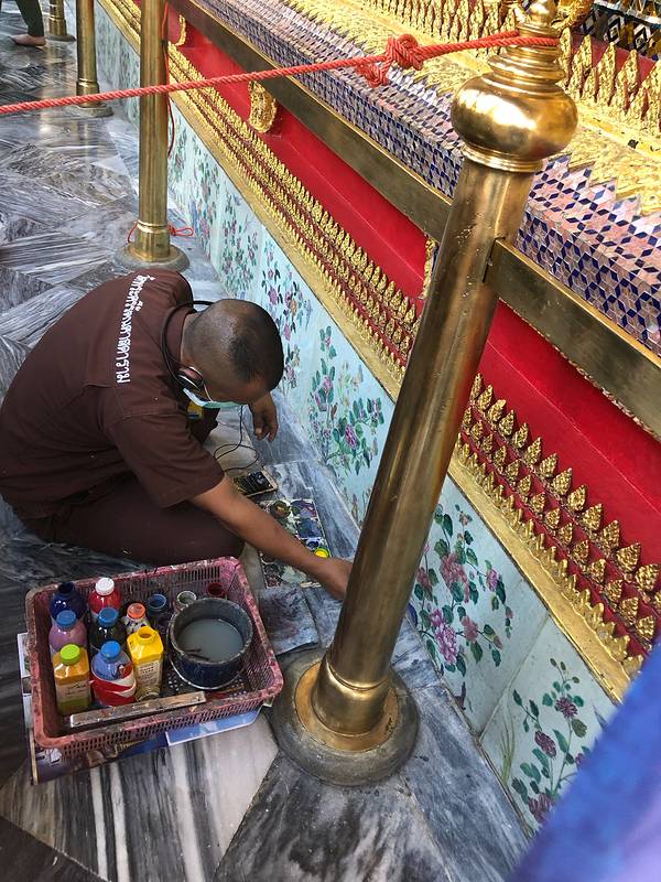 曼谷国立博物馆的二号馆,里面的壁画可以近距离接触。博物馆里还有个平价餐厅曼谷国立博物馆的二号馆,里面的壁画可以近距离接触。这要得益于泰国松散的文物管理制度,在国内,这样的壁画已经被玻璃墙围起来了。博物馆里还有个平价餐厅。