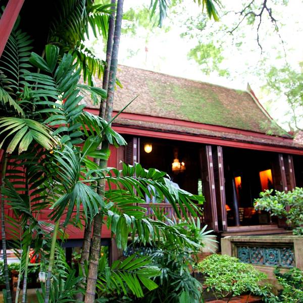吉姆 · 汤普森博物馆是一座绿荫覆盖的建筑群,美国丝绸家和艺术收藏家吉姆·汤普森的故居。整个建筑是座典型的泰式花园,汤普森在泰国中部地区收集了各种被遗弃的泰式房屋及架构,1959年把它们重新组装。 汤普森简介 他原来是一名美国建筑师,二战后,当他迁入曼谷时,邻居家的手工制作的丝绸引起了他的注意,并激起了他的商业意识。之后他逐渐向米兰、伦敦、巴黎的时装公司寄送了样品,逐步建立了稳固的全球客户群,同时也振兴了泰国的丝绸业。不过,他本人于1967年在马来西亚失踪。