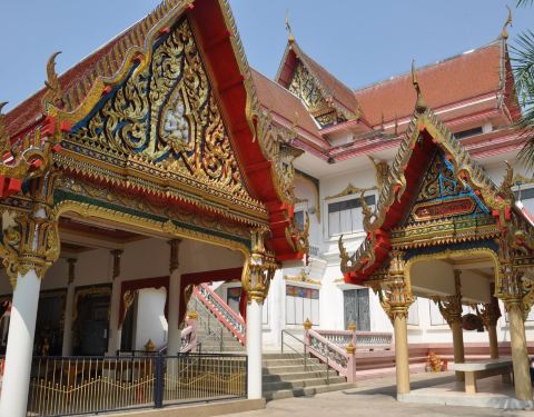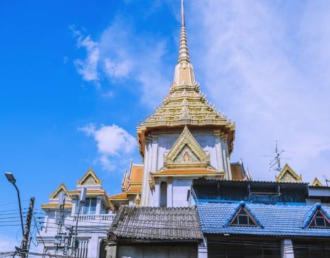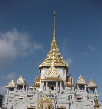 在远处就可以看到金碧辉煌,非常大气的金顶建筑。建筑格式也与一般曼谷寺庙的飞檐结构不同在MRT华兰蓬站和中国城间,从MRT站下车步行7分钟可到。在远处就可以看到金碧辉煌,非常大气的金顶建筑。建筑格式也与一般曼谷寺庙的飞檐结构不同。寺外的副殿,是建筑格式类似的一,二层楼寺庙。