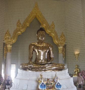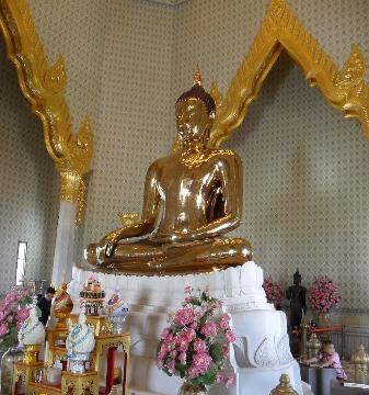 参观完金佛寺,正好去唐人街吃饭。对泰国人来说,他们不会去大皇宫,但会来金佛寺拜佛对泰国人来说,他们不会去大皇宫,但会来金佛寺拜佛。寺庙并不大,一座气势恢宏的主殿,供奉着世界上最大的金佛,外加一座偏殿和博物馆。参观完金佛寺,正好去唐人街吃饭。