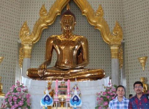 观赏世界上最大的金佛,赤脚进入佛殿,盘腿而坐静心冥想。