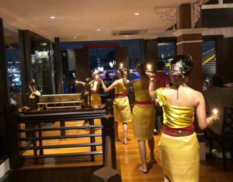 住在这里旁边的酒店,晚饭时间不想走远,随机选了这里吃。没想到完全惊喜!餐厅在湄南河畔,景色一流,食物可口,几个当地特色菜很好吃,关键是晚餐期间还有表演,包括杨琴和舞蹈