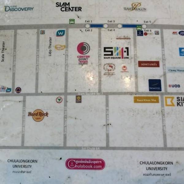 乘坐轻轨BTS到【National Stadium】站,2号出后出,沿着MBK旁边的朱拉隆功大学路走大约1000米,在十字路口左手边Chamchuri Square Building。