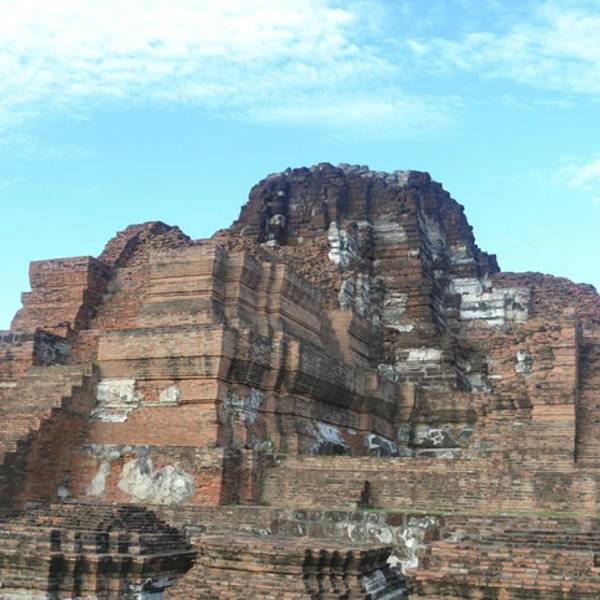 “大城”寺院多是古朴的高棉风格,被缅甸入侵烧毁,如今满地荒芜,只剩下砖红色的残缺佛塔和灰黑色的...“大城”寺院多是古朴的高棉风格,被缅甸入侵烧毁,如今满地荒芜,只剩下砖红色的残缺佛塔和灰黑色的破损佛像。
