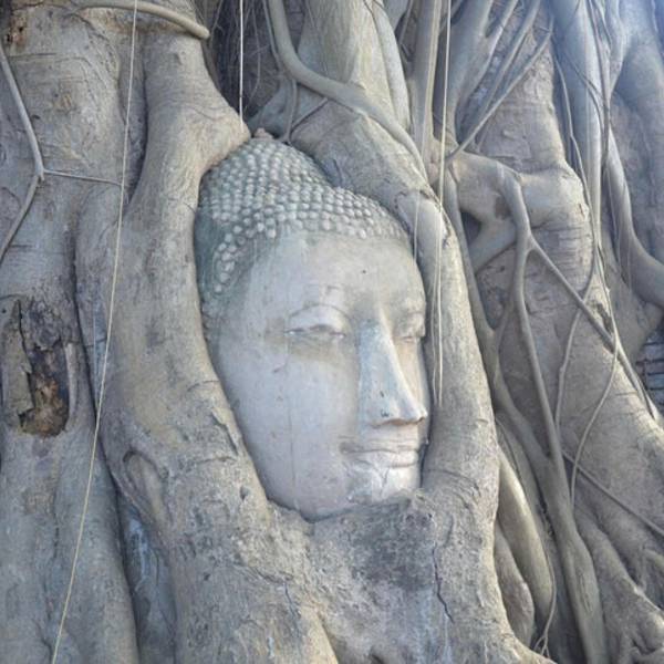 ...下的佛头,据说这也是大城一个最精彩的景点,谁又能想象到,大自然的神奇用这种方式跟遗迹融合在一起地方很大,玩的朋友在外面租辆单车吧,30泰铢一天的价格,而且不需要压任何东西,这要是放在中国,那绝对两天就破产了。