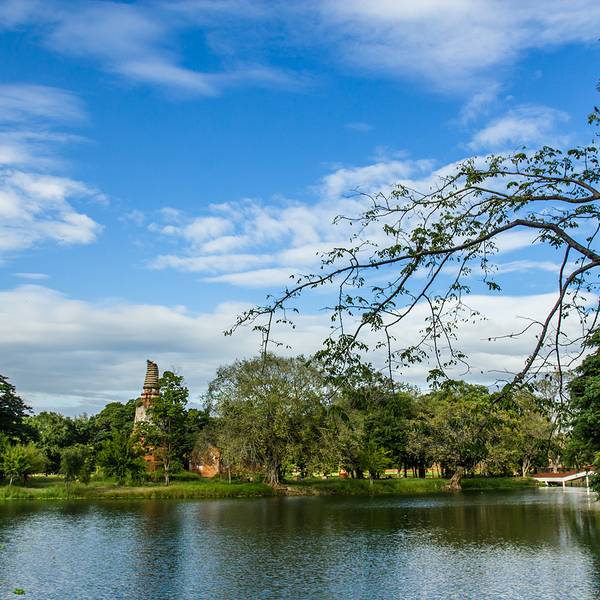 美丽的大城历史公园,树木丛生,河流交错,环境优美,处处绿意盎然。各式精美的佛塔点缀其中,洁白亦或斑驳,都在述说着自己不朽的传奇。