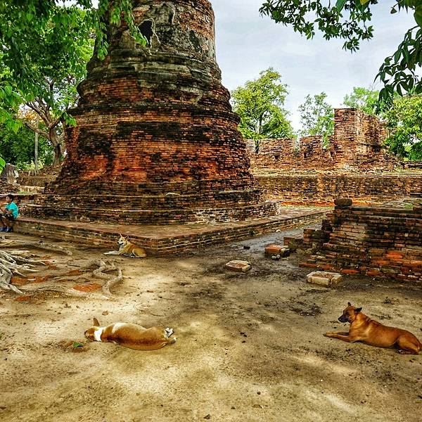 大城的各个主要遗迹门口都需要买票,但绝对都值得一看,不要吝惜~虽然最出名的是树佛,但几乎每一处都苍凉壮观,非常震撼...许多暹罗野生汪在各个遗迹里游走,在树下乘凉打滚,很可爱,但不要去打扰它们以免发飙被咬。