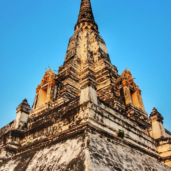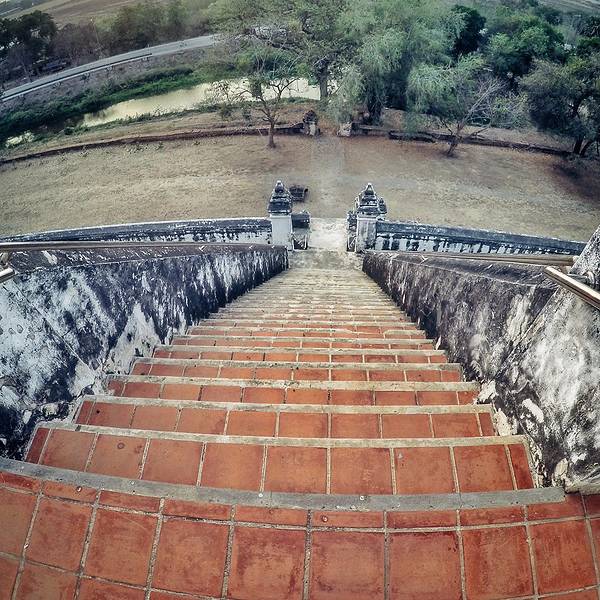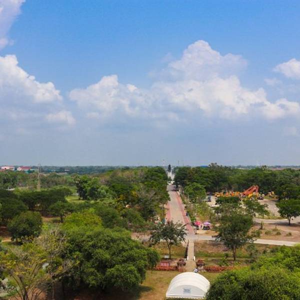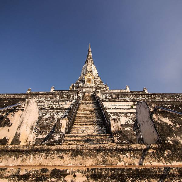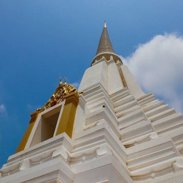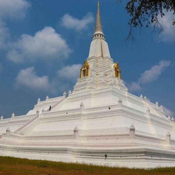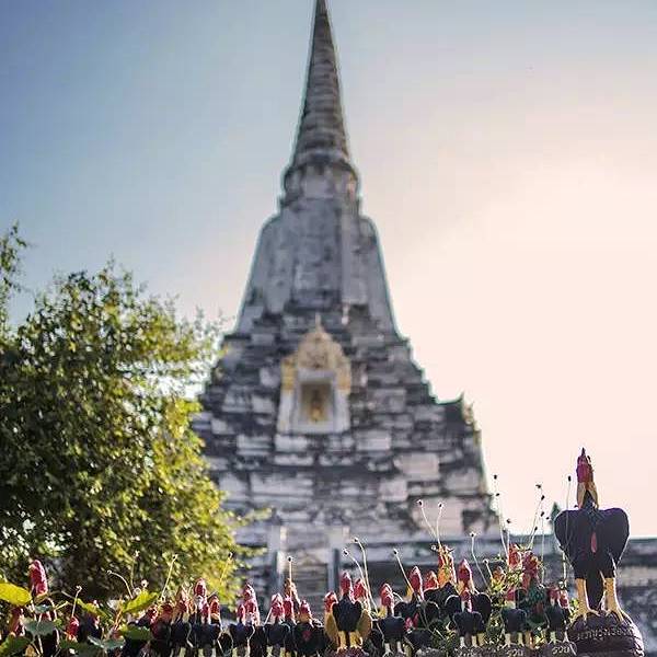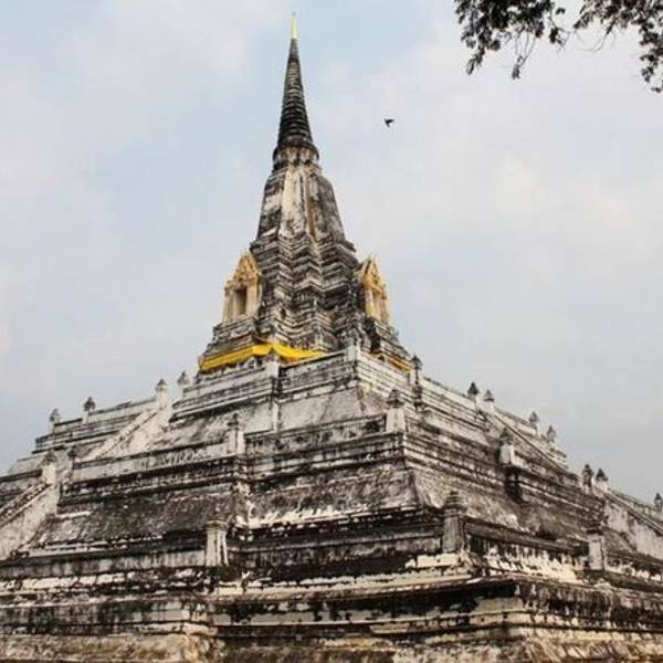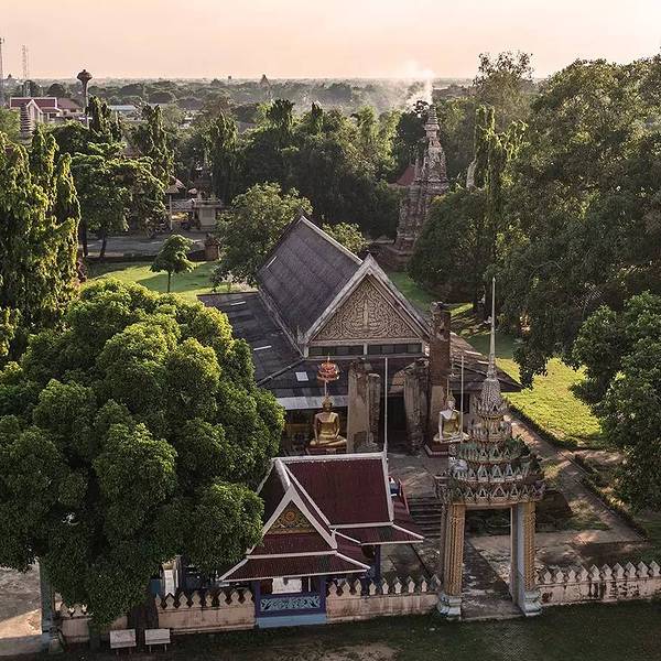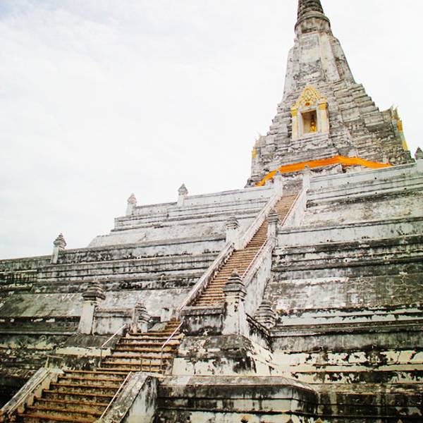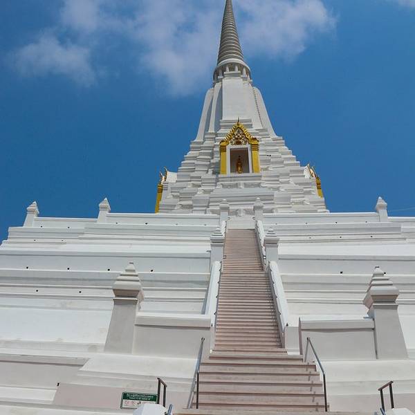 普考同寺建于1387年,寺内有一座高90米的泰式方型佛塔,此佛塔采用2.5公斤黄金装饰,非常壮观。佛塔每层都有宽两米左右的回廊,游客可以在这里登上佛塔,俯瞰大城的风景。这座寺相比其他寺庙更加安静和谐,也许是因为这个地方离城区相对较远,游客也比较稀少,周围都是水田,充满着田园气息。