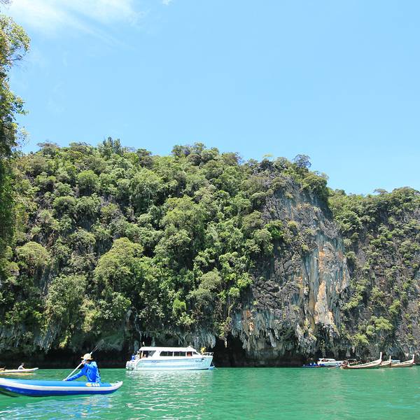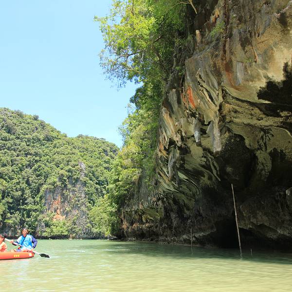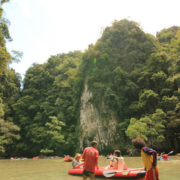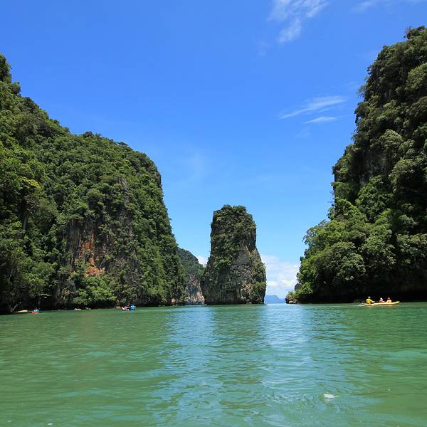 【环境评价】从攀牙府码头出发,一路上能欣赏到壮阔的安达曼海,还有海上各种形态各异的岛。这里有鬼斧神工的悬崖陡壁,神秘的溶洞,有“地球之肺”美誉的红树林,最出名的是曾经拍摄好莱坞影片《007之金手枪》的“007”岛。1974年好莱坞影片‘007-金手枪’在此地取景,从此以后这里便成为了普吉又一个著名的旅游景观,也成为了攀牙湾国家公园最大的亮点。【皮艇游】攀牙湾皮艇探险是最经典也最好玩的。既安全又刺激,是全家大小一起出游的最佳选择,由于很多的洞口在涨潮时变得很狭小,游客必须躺在皮艇内进入山洞,只要遵循导游讲解的注意事项,此项活动既悠哉又安全。整个一日游要2次换乘皮艇游览,二人一组坐上皮划艇,每个皮艇有一个船夫撑船。傍边的小岛上有很多洞,皮划艇可以在这些洞中穿来穿去。有些可以到一个封闭的港湾,有些地方还可以让你在傍边上岸拍照,有些的洞很小,需要都躺下来船才可以过得去,有些大一些的洞的上面可以看到钟乳石,还能看到红树林。【007岛】攀牙湾最著名的景点就是007岛,因为007系列里《007之金手枪》是在这里取景而得名。这个景点因为岸边很浅,必须换乘泰国特色长尾船上岛。岛上不大,可看的不多,最著名的就是007岛标志性的风景,一个耸立在水中的山峰。 展开