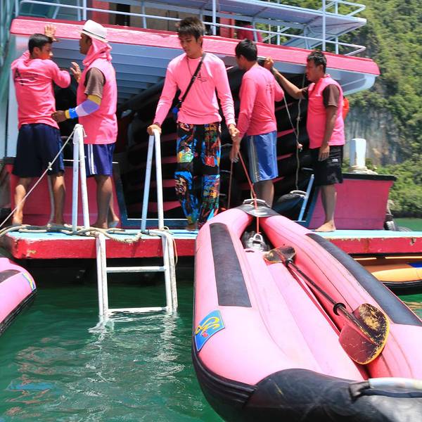 2、普吉岛有众多旅行社代理攀牙湾一日或半日游,从二岛游到六岛游多种类型可供选择,价格在700-1200泰铢之间,包括探访007岛、水上渔村、独木舟探险、皮划艇、骑大象、看猴子等。旅行社负责到酒店接送。