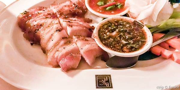 晚餐在一家悬崖落日餐厅用餐,想吃比较地道的传统泰国菜,这里强烈推荐。距离酒店5分钟的车程,Baan Rim Pa是一家采用皇室烹饪的方法进行制作的一家悬崖落日餐厅。菜单上的菜肴是以前皇室才可以享用的哦。多次入...晚餐在一家悬崖落日餐厅用餐,想吃比较地道的传统泰国菜,这里强烈推荐。距离酒店5分钟的车程,Baan Rim Pa是一家采用皇室烹饪的方法进行制作的一家悬崖落日餐厅。菜单上的菜肴是以前皇室才可以享用的哦。多次入选泰国前十的最佳餐厅之一。环境非常好, 在悬崖上,坐拥180度的无敌海景,落日时分,可以边欣赏日落边享用美食。每道菜都很精致和用心!餐厅有条走道可以下来这边,景色很美!这些类似于广东的点心,美味可口!
