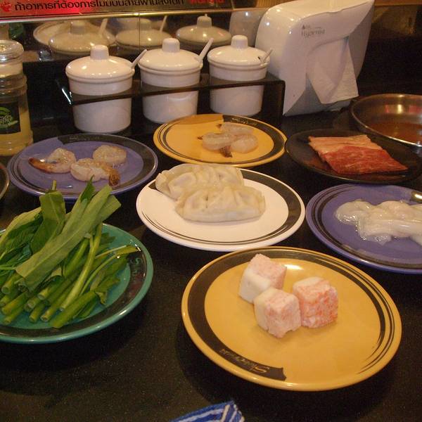 【涮涮锅】是一人一个小锅,汤底有鸡汤、冬荫功汤...这家餐厅吃的是日式自助回转涮涮锅+日式料理自助餐,345B/人,限时1小时15分钟要吃完埋单,涮涮锅的料和自助餐区都很丰富,雪糕和饮料不限量,性价比非常高哦!