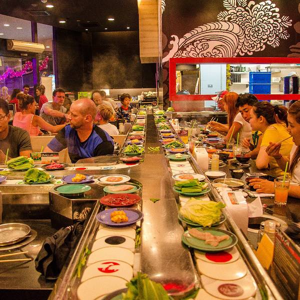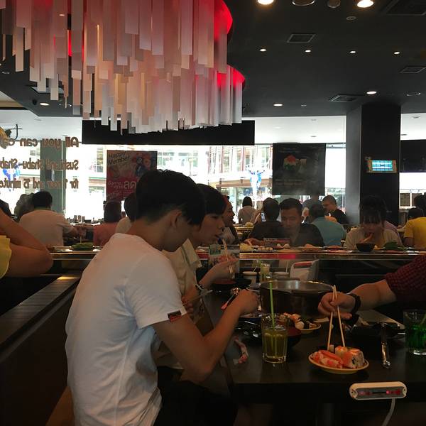 Shabushi日式自助火锅刚开始觉得他的名字挺逗的,但是进去之后,感觉整个都被惊艳到,太值了一点吧~是一家日式自助回转小火锅外加日式料理的自助餐厅。有寿司,有火锅,可以吃冷的,也可以炽热的。非常赞,而且雪糕饮料还是无限量供应的呢。【人均消费】人均消费为345B每个人,折人民币约为七十元。现在七十元在国内,上哪儿找有海鲜的自助餐吃呀~不过限时75分钟,时间略短,所以请动作快一点~【推荐菜】个人比较喜欢冬阴功汤锅,如果喜欢中规中矩的话,鸡汤锅也是不错的。菜品请任意拿吧,个人喜欢海鲜,所以就常常拿海鲜,当然,海鲜也是最划算的嘛,不是吗~另外,爱吃巧克力冰淇淋,味道真的不错~【小贴士】吃饭的时候不要光吃嗨了,要注意一下时间哟,时间是75分钟,留意一下不要超时,超时是需要另外收费的。而且,还是吃多少拿多少吧,不要浪费呢。