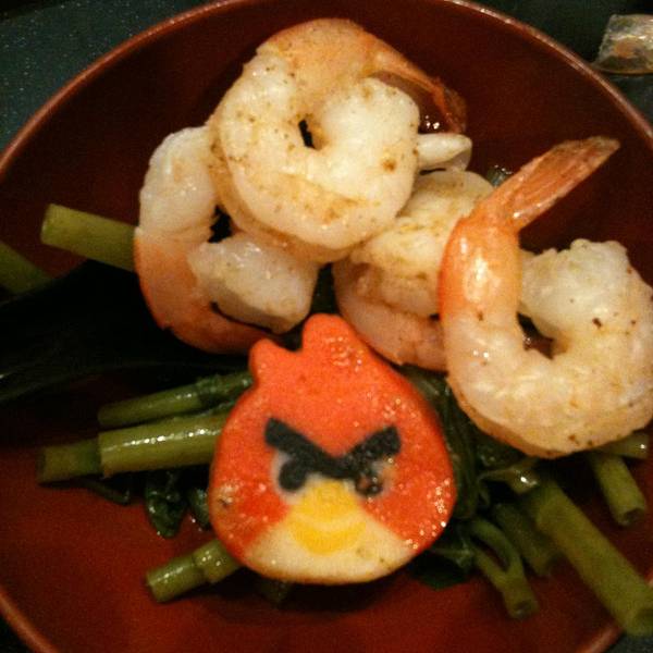- 最最怀念的是那虾,我和灰灰吃了大半斤,鲜甜呢。愤怒的小鸟纯粹样子好看,就是面粉