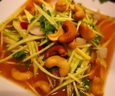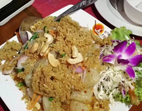 点了泰国传统的青木瓜沙拉,味道很正宗,巨辣,鱼的做法和自己平时吃的不同,挺新鲜的,烤的虾是遵循的原汁原味的做法,给了沾料,但是没有在烹饪的时候加任何调料,挺好吃的