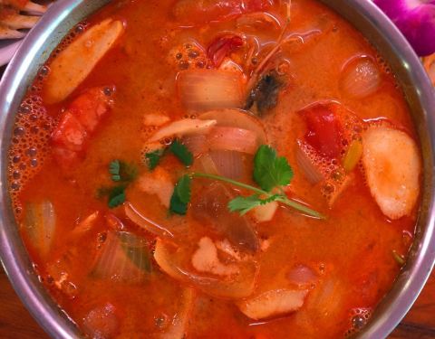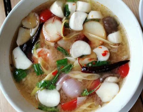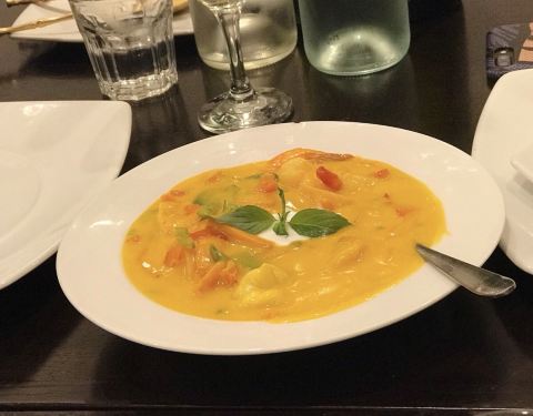 这是根据攻略找的地方,环境靠着海边,可以吹着海风,看着灯光,觉得很不错,尝试了泰国的粽子,很小一个,还以为是粽子,原来是鸡肉来的,果然不能看外表,海鲜很新鲜,冬阴功汤不怎么好,偷工减料似的,有点失...