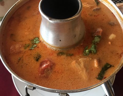 餐厅坐落在芭东附近的山顶上,纯木质的建筑风格,环境很温馨。餐厅一侧面朝大海,可以看到芭东海滩的全景,边就餐边赏海景,十分惬意。黄咖喱炒鸡肉饭是招牌料理,咖喱螃蟹肉质鲜美,也推荐这里的铁板海鲜,新鲜又实惠。