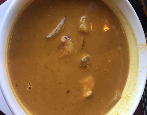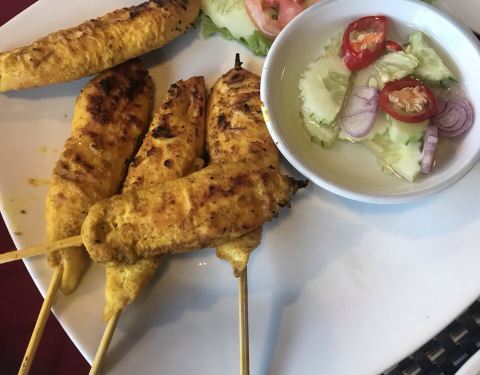 这是根据攻略找的地方,环境靠着海边,可以吹着海风,看着灯光,觉得很不错,尝试了泰国的粽子,很小一个,还以为是粽子,原来是鸡肉来的,果然不能看外表,海鲜很新鲜,冬阴功汤不怎么好,偷工减料似的,有点失望,价格还可以,但是是另外给的小费,不划算。
