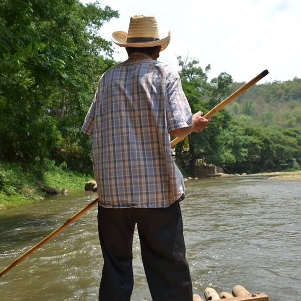 差点忘了,骑象之前还有个漂流活动。撑竹筏的大叔撑着我们穿行在小溪中,惬意地享受着夏日中的一丝丝凉风和阴凉。在漂流的终点,还有买了一些荔枝,我敢说绝对是我这辈子到目前为止最为美味的荔枝了。