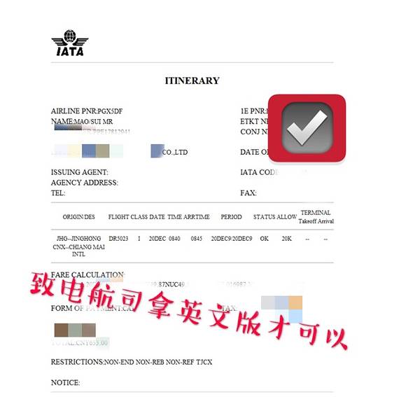 ⚠️往返机票行程单必须是全英文版,去哪儿平台购买发过来的审核没通过,后来致电航司申请的,发送到邮箱后截图上传即可;