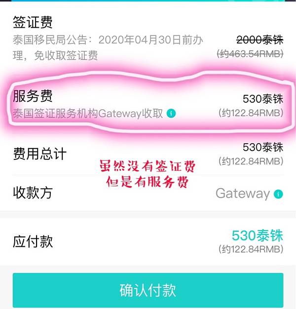 但是如果使用zfb申请电子落地签证,需缴纳服务费给到泰国签证服务机构Gateway,费用530🐷约人民币123元/人。