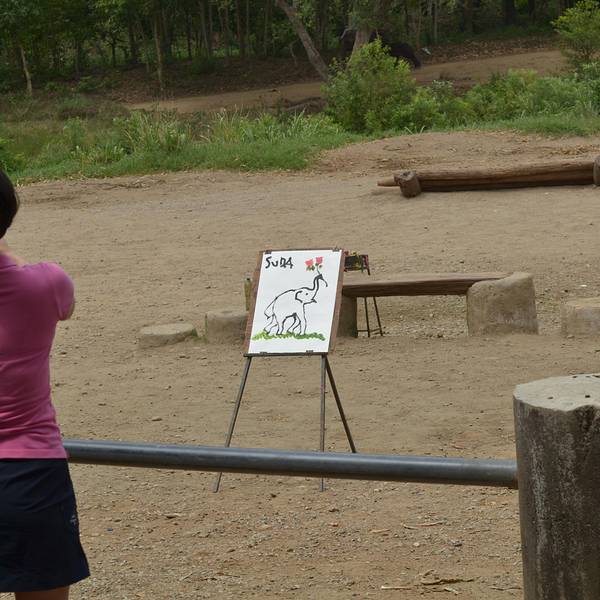 这里全程都可以跟大象互动。可以喂大象,还能观看大象表演,如踢球、投篮、画画,画出的作品会售卖。