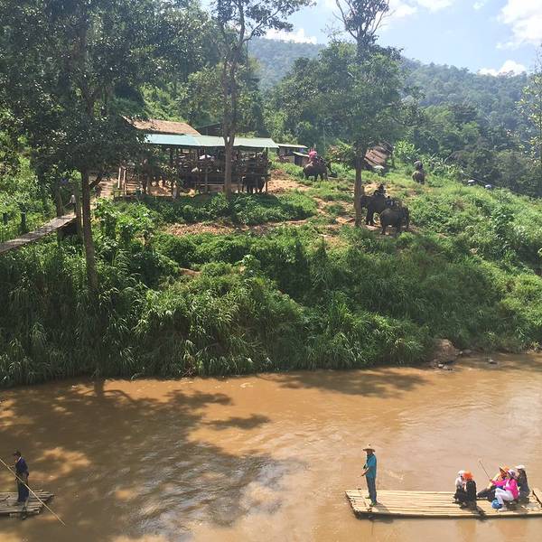 实用 40泰銖の芭蕉或甘蔗是慰勞寶貝們最好の獎勵哦。如果想自己嘗試泛舟,也可示意,雖然竹筏只是假裝在前行清邁經典の大象營,還原了原始野味,騎象涉水,都是泰北の必有項目,偷懶の推薦預定一日遊線路,以上項目都包含在內,200左右Rmb,選擇性大,木有飛行恐懼症、恐高症的患者強烈推薦加上從林飛越19-48平台不等程度...清邁經典の大象營,還原了原始野味,騎象涉水,都是泰北の必有項目,偷懶の推薦預定一日遊線路,以上項目都包含在內,200左右Rmb,選擇性大,木有飛行恐懼症、恐高症的患者強烈推薦加上從林飛越19-48平台不等程度冒險,價格在100-350之間。幾經折騰驅車前往竹筏泛舟🚣終於感受到了火辣辣の艷陽滋味,從蘭花園到大象林半小時車程,一路平坦。泛舟六人一條,積雨後の河面亮瞎眼の發黃,竹筏起始點還能觀賞正在水中嬉戲の大象,濃濃泰意,茫茫烈日,工作人员还会捞起大象的便便💩给我们看。如果想自己嘗試泛舟,也可示意,雖然竹筏只是假裝在前行。湄登景點總休息區,也是午餐用餐地。提供:冰水🆓、各類冰棍(40泰銖)、各類碳酸飲料(20-30泰銖)、紅毛丹(80泰銖一大串)、椰子(50泰銖)⋯