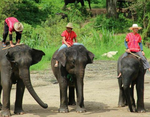 金骆驼 湄登大象营(Maetaeng Elephant Camp)位于清迈古城北部,远离市区,散客很难找过来湄登大象营(Maetaeng Elephant Camp)位于清迈古城北部,远离市区,散客很难找过来,基本上都是团客,尤以中国旅行团居多,既有国内组团出发的泰国五日游/七日游(等等)旅行团,也有到了清迈再报名参加一日游的...湄登大象营(Maetaeng Elephant Camp)位于清迈古城北部,远离市区,散客很难找过来,基本上都是团客,尤以中国旅行团居多,既有国内组团出发的泰国五日游/七日游(等等)旅行团,也有到了清迈再报名参加一日游的自由行旅客。我是在所住的 D-Well Hostel 预定的“湄登大象营骑大象+大象表演+坐竹筏+坐牛车+兰花园一日游”,前台小哥小妹人都很有亲和力,对清迈的小吃、夜市、寺庙、周边游都很熟悉而且有他们自己的偏好,打电话给旅行社咨询清迈大象营一日游的报价时那温暖的声音简直要把我的心融化了。最后问到了800泰铢的价格,就这么爽快的决定了,签完一日游合同付完费用,第二天上午会有专车来接。据说,在清迈除了湄登大象营,还有湄莎大象营(Maesa Elephant Camp)和美旺大象营(Mae Wang Elephant Camp),以及以互动趣味的大象课程著称的Bobby's大象之家等等,各有特色。若只是想近距离看看大象表演,骑上大象转一圈,报哪家都无所谓,但若想获得自己期望中的体验,不妨在抱团之前问清楚去哪个大象营,然后查一查游客们对该大象营的评价如何。我来湄登大象营的时候刚好有一头刚出生4个月的小象,依偎在象妈妈身边,可爱坏了。我们一直在尝试给他喂香蕉,但他似乎还不懂怎么吃,一个劲地撒娇卖萌,香蕉全被他妈妈抢走了。竹筏体验说实话过程有点无聊,沿途风光还行,但溪水不太清澈,船夫也没怎么与游客互动交流。大象表演则有意思得多,踢球、跳舞、摆Pose、画画等环节都挺有趣的。解说员看到在坐的游客大多数来自中国,干脆大多数时候直接用中文与观众互动,逗得现场欢声笑语。听说饲养员为了调教大象配合表演,让他们吃了不少苦头,也许是这样的吧,但至少在我的湄登大象营之旅中,没看到让人伤心的画面。但愿他们有被人类真诚对待。骑象的时候更有意思,尤其是上下坡的时候,感觉都快滑下去了大象却能神奇般地保持平衡。若碰上比较逗、中文又说得好的训象员,一路也是很欢乐的。他们在服务上的心思若是让我们度过了一段欢乐的时光,理应得到回报,所以在付小费的时候就根据你的“快乐指数”想给多少就给多少吧。 展开