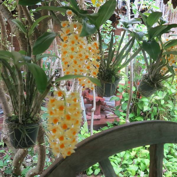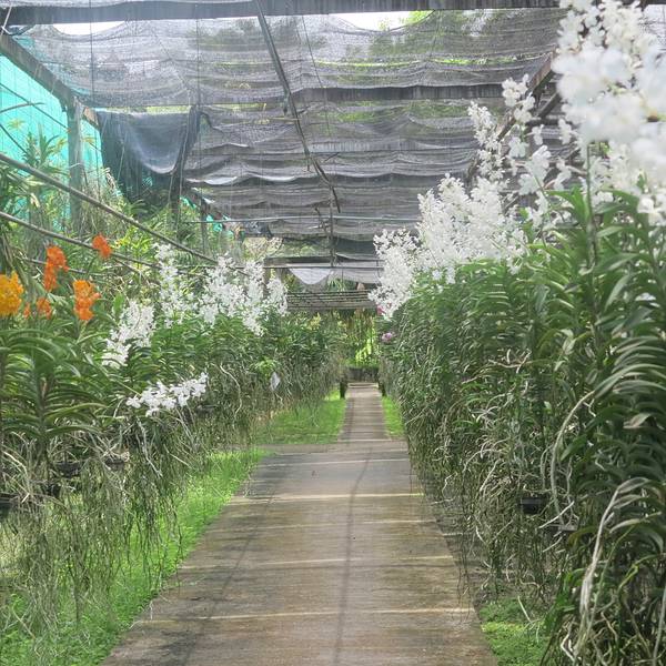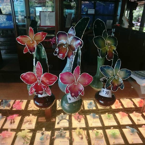 交通:因为这个兰花和蝴蝶农场并不在清迈市区,开车需要20分钟左右,当天在农场门口并没有看到有突突车和双条车,但是有看到有人骑着摩托车前来,我们是报的半日游的团,所以是旅游小巴早上七点半的时候到酒店门口去接的,其实我比较建议报这样的团,不耽误事,而且本身兰花和蝴蝶农场的购物的意义大过于参观兰花和蝴蝶的意义。参观的时间:不清楚是不是所有的时候都能看到蝴蝶,我们是6月初的时候去的,兰花还能看到很多品种的都在盛开,有白色的,黄色的(原谅我看不懂泰文,也没有人引导,只能看个稀罕了)。我们去的时候一只蝴蝶都没有看到,问过导游,导游说现在蝴蝶不在了。不太懂不在了是指永远不在了,还是说季节问题暂时看不到了。在兰花园有一个工艺品商店,是用新鲜的兰花加工制作的各种项链,手链、头花,胸针等等。价格一般在1300泰铢到500泰铢不等。可以买几件回来送女性长辈,妈妈一口气买了五条,而且是她觉得买的最不后悔的礼物。因为带回来送给姨妈他们确实都很喜欢。