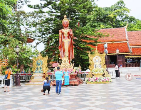 【白象纪念碑】素贴寺前有一条300台阶两旁有纳迦护卫的石梯, 素贴寺之所以称为双龙寺,游客可以选择步行上台阶,亦或者缆车,双龙寺的开放时间是早6晚6,票价30泰铢。主寺门口有纪念碑和库巴西威恰的铜像,出了主寺穿好鞋,往右手边直径走,可以看到白象纪念碑,登上亭子,清迈全景一览无余,当然也包括清迈机场。【蒲屏行宫】实则为泰国皇室的避暑行宫,皇室为了视察民情和接待外国贵宾而造的冬季居所。所以只有他们未在这里居住的时候,才能参观整个花园,不过内部也是不能开放的,只可远观不可亵玩。行宫位于素贴寺距离3-4公里的山上,需要注意中午11:30-13:00是不开放的,须合理安排好时间参观,门票50泰铢。