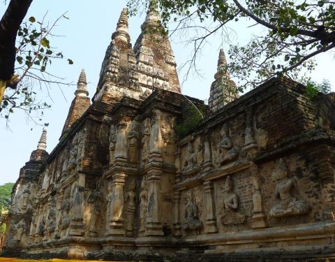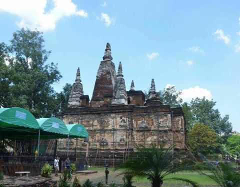 界遥寺又称泽玉寺,建于1455年,寺内栽种来自印度的菩提树。1477年曾有100多位佛教高僧在此举行世界佛教徒会议。寺内有七个尖塔,故又称“七旋塔”。七旋塔界遥寺按照印度佛陀迦耶的摩诃菩提佛寺(Mahabodhi Temple)的风格仿制。七个尖塔代表佛祖在顿悟之后在菩提耶度过的七周。环境清幽的寺庙整个寺庙被修剪整齐美观的草地所环抱,环境幽静充满了佛家圣地的一种超然气氛。这里是一座闲适、美观的寺院,值得寻访。在这里,有很多小和尚在临摹古塔侧壁上残留的佛像,即使只留下不完整的痕迹,也可窥这些佛像的艺术之美。这里也许没有契迪龙寺那么雄伟,没有松德寺那么秀美,但是却也有另一番风韵。