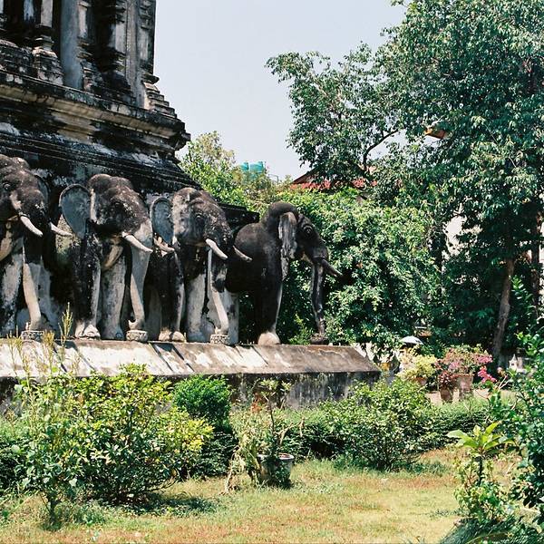 后院里,还有一座底部用15头大象包围的方...清迈寺(Wat Chiang Man)
