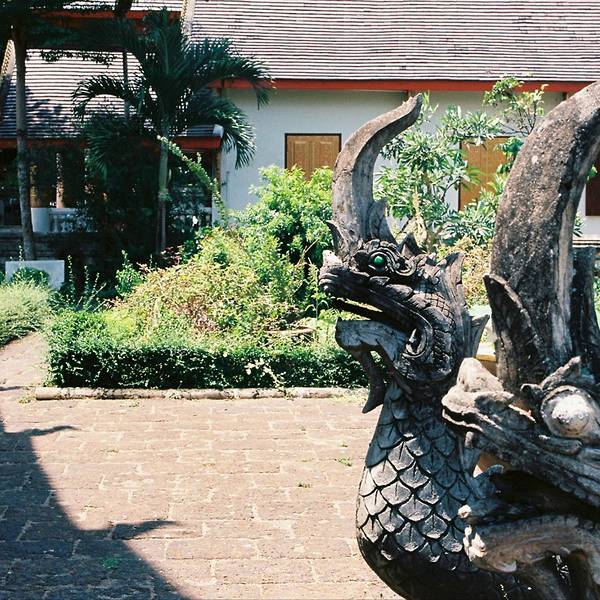 说实话清迈寺本身不在我的行程里,因为一查离我们的确很近就想说临时跑...在热带雨林里做了蛮久,算好时间去办理入住。换好衣服重新走去清迈寺~路程不远,路过7-11买了瓶水,这边7-11很多,买水买电话卡很方便~