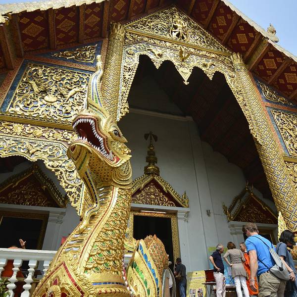 清迈最大的寺庙,香火旺盛,有数尊高僧“真身”蜡像,欣赏各式珍贵壁画。