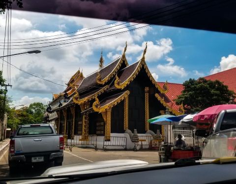 在清迈2km×2km的四方古城内,如果不是赶时间的话,基本步行是可以到达所有景点的,怕累的话也可以租自行车或坐dudu,就在寺庙对面就有自行车出租的店,不想步行的可以考虑自行车代步。