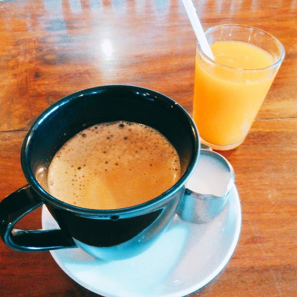 青菜和芒果沙拉超級好吃!一邊吃早餐一邊享受陽光一邊看著院子樹上的落葉!果汁很好喝