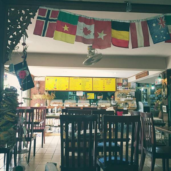 一个很休闲的地方,顾客还挺多的,环境布置得很休闲,尤其是室外的,树上都还挂着装饰,鹅卵石路,像在花园用餐一样,食物都很健康,少油少肉,选择都挺多的,但是人手不多,尤其在户外的,需要找服务员有些难度而已,价钱贵,不能多消费。