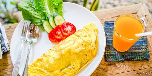 青菜和芒果沙拉超級好吃!果汁很好喝!一邊吃早餐一邊享受陽光一邊看著院子樹上的落葉!還買了老闆娘姐姐做的草藥。很舒服,顏值高!頭暈一擦就好了!謝謝~