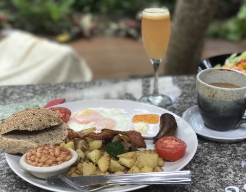 Blue Diamond Breakfast Club在一个花园里,环境很好,虽然店名说是早餐,但是...