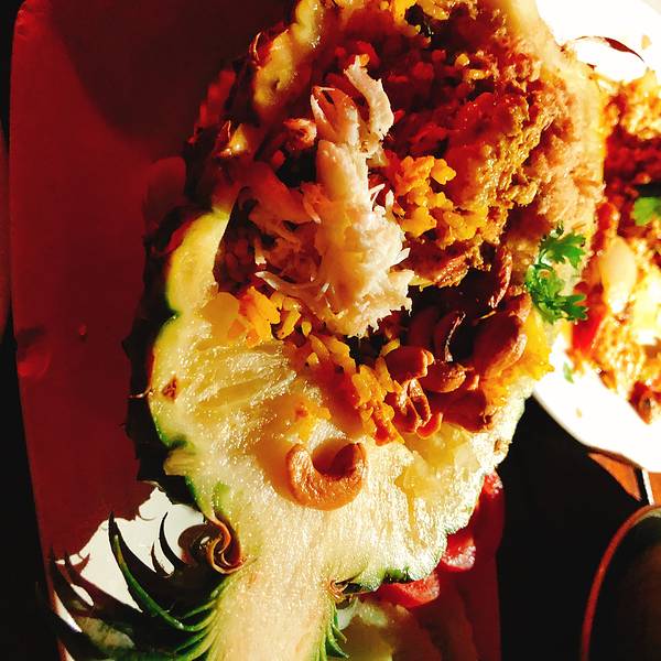 买完东西回酒店放好东西稍作休息,我们就去吃了清迈最贵的一餐饭。名字叫The good view,就在塔佩门不远,靠近河边,我们去的比较晚了,河边的位置都没有了,就是一间音乐餐厅,虽然贵了点,但是很不错。这顿我们花了1200B。全家福芒果糯米饭咖喱蟹空心菜菠萝饭美好的一天又度过了。