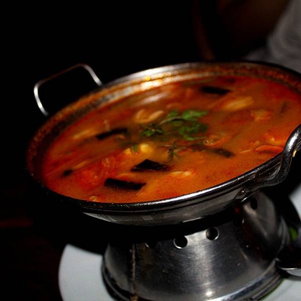 这个荔枝味很浓呀,酸酸甜甜的带有一点儿荔枝核的味道,加了一些冰沙,在炎热的气候下喝这个正合适,好喝~~冬阴功汤: