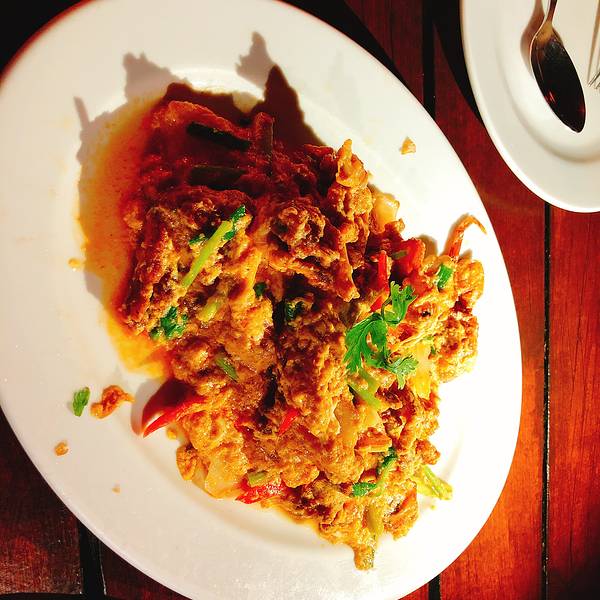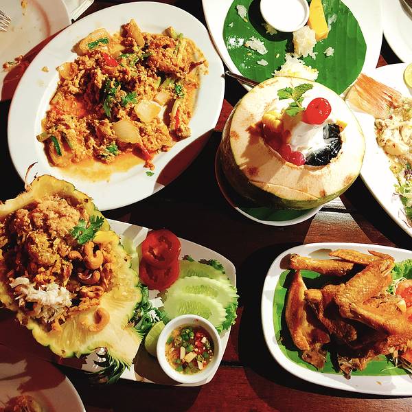 餐厅严格意义上是个餐吧,能喝酒也有吃饭。若大一个餐厅装修得像个酒吧,颇有几分调调。晚上有乐队驻唱,歌手有老外也有泰国本地女青年,以英文歌为主。餐食以泰式料理为主,菜品做的中规中矩,还可以在河边的露天位就餐。