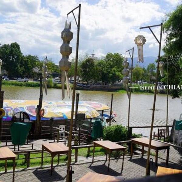 我大老远的顶着烈日,终于找到这家炒得很火的河边餐厅,再次冲着一些噱头来的。但却没有想象中的那么如意,我承认这更多的不满还是来自服务生的态度 位置很好找,就在河边,建议可以做tutu车前往~之前有听说这家太火了,来这里吃饭还得提前预订位子,不过因为我们是正午三点半来吃饭的,所以到的时候只有我们一桌。可能因为小有名气,掺杂了一些商业气息,服务生的态度略显张扬,随意安排我们坐在位置极佳的一桌,随手递了一份菜单给我们便在旁边的一桌打起瞌睡 不用担心点菜看不懂菜单,因为被咱天朝的同伴炒的太火,所以基本全有配图,甚至也有中文想听评价是吗? 1、分量足~~每一道菜都是大盘装的。四个菜就足足摆满了一桌 2、味道真心不赖~~嗯...好吃...很好吃!!尤其是那盘柠檬鱼。瞬间变成开胃菜 3、价格略微小贵~~这餐吃下来一共花了我们780B 荔枝juice: 这个荔枝味很浓呀,酸酸甜甜的带有一点儿荔枝核的味道,加了一些冰沙,在炎热的气候下喝这个正合适,好喝~~冬阴功汤: 到了泰国不喝冬阴功汤算是白来了吧,地道的泰北菜式,再配上一碗米饭,这样泡着吃感觉最棒~~柠檬蒸鱼: 这道菜必须强烈推荐,巨好吃,分量不是一般的足,和国内那些烧烤摊上几十块一条的小鱼根本没法比,肉多且很鲜嫩,调料是这道菜的精华所在,有够酸爽,食欲瞬间大增嘛~~海鲜炒饭: 个人觉得味道不错,你可以说它很普通,因为真的除了米饭、葱花、鸡蛋和偶尔看到的虾仁儿,再也没别的了,如果嫌味道过于清淡,你可以加一点柠檬~~泰式炒粉: 这应该是我在清迈吃过最不解风情的炒粉吧,卖相没话说100分,河粉很Q也很有弹性,但是味道偏甜,再配上旁边那些豆芽、白菜、生菜、韭菜....原谅我实在有点儿搞不清状况~~其实个人觉得The Riverside Bar And Restaurant是胜在地理位置,静坐在流淌的屏河边,看起来是有那么点情调,倘若夜幕下,在桌上点一个烛台,你依稀看得到周围模糊的人群,却能凝视对桌的熟悉面孔,我想我们去的时间是不对的,没有了屏河夜景的衬托,这里黯然失色了不少,不过不得不承认的是:口味也确实还不懒