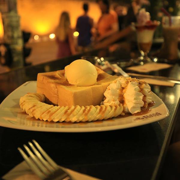 心心念念着芒果糯米饭,决定跟小mm再去吃一顿。其实芒果糯米饭,在这里应该算是一道甜点,伴着冰激凌一起放入口中,凉凉甜甜的又把糯米的那股香气掺入进来,真的是……棒棒哒👍解了馋,再去隔壁找两位男同事们一起西餐腐败一下