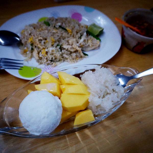 其实芒果糯米饭,在这里应该算是一道甜点,伴着冰激凌一起放入口中,凉凉甜甜的又把糯米的那股香气掺入进来