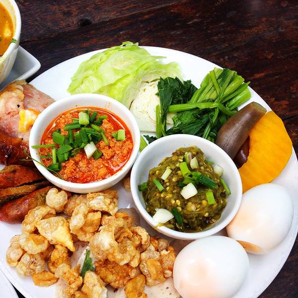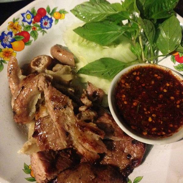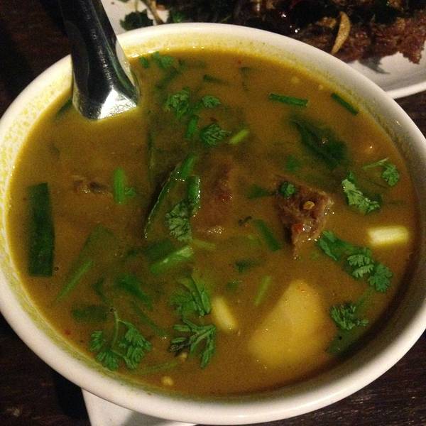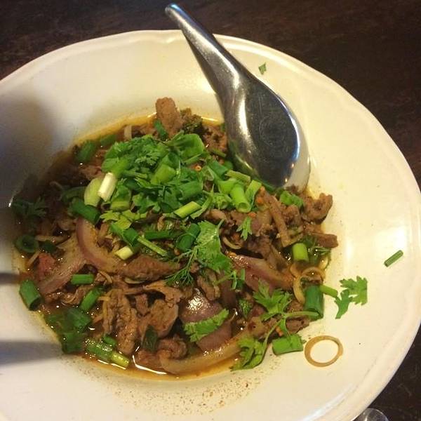 来到宁曼路本来是找iberry的,晚上了就看看去哪儿美食,然后被这家泰北菜吸引了,很辣的。各种打听问路下,还有人告诉我们已经关门了,于是抱着碰运气找,看到一家店门口很多人,跑过去一问就是这家店。很开心,等了5分钟才进去,人气很旺呀。不过刚坐下就迎来了清迈第一场雨,吃不到这里特色烧烤了。然后随之而来的问题是看不懂菜单,被服务员介绍了几个菜后,就糊里糊涂等了。上菜才感慨,这是什么鬼!!!不过味道很好,下次来吃这个一定要看得懂菜单