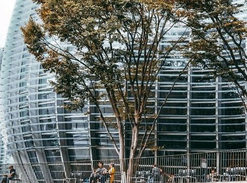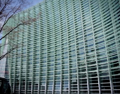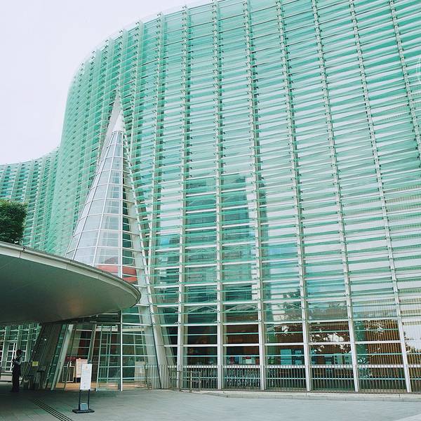 东京国立新美术馆,一座由玻璃、水泥、钢铁混合建立的具有未来感的建筑拍照tips: